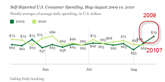 from mish, gallup's self-reported u.s. consumer spending, lags 2009